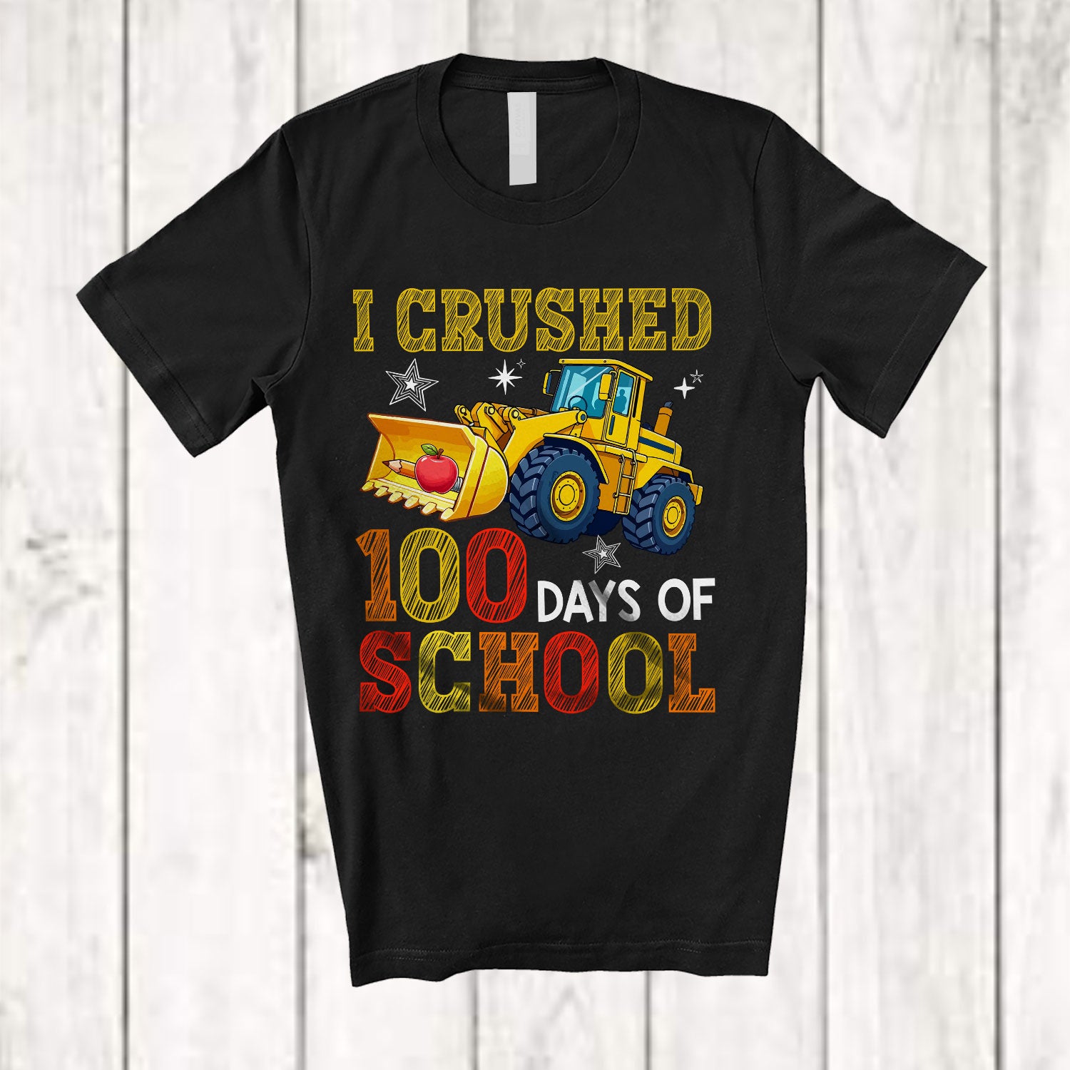 I Crushed 100 Days Of School; Amusing 100th Day Of School Excavator; Students Teacher T-Shirt. This cotton t-shirt is a durable staple product with a classic fit. One of the most popular items, it has a relaxed style made for everyday and casual wear.