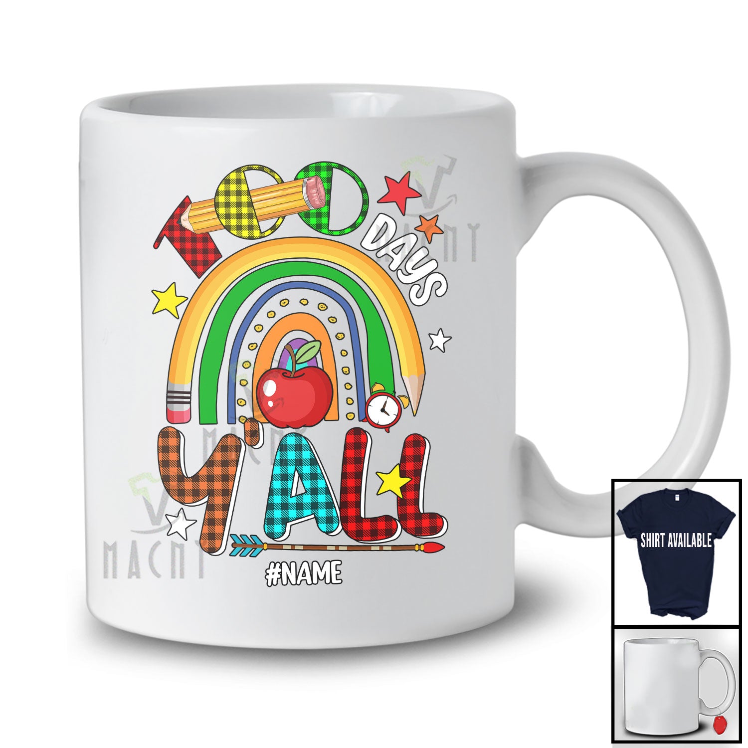 Personalized Custom Name 100 Days Y'all; Wonderful 100th Day Of School Things; Plaid Rainbow T-Shirt. This cotton t-shirt is a durable staple product with a classic fit. One of the most popular items, it has a relaxed style made for everyday and casual wear.