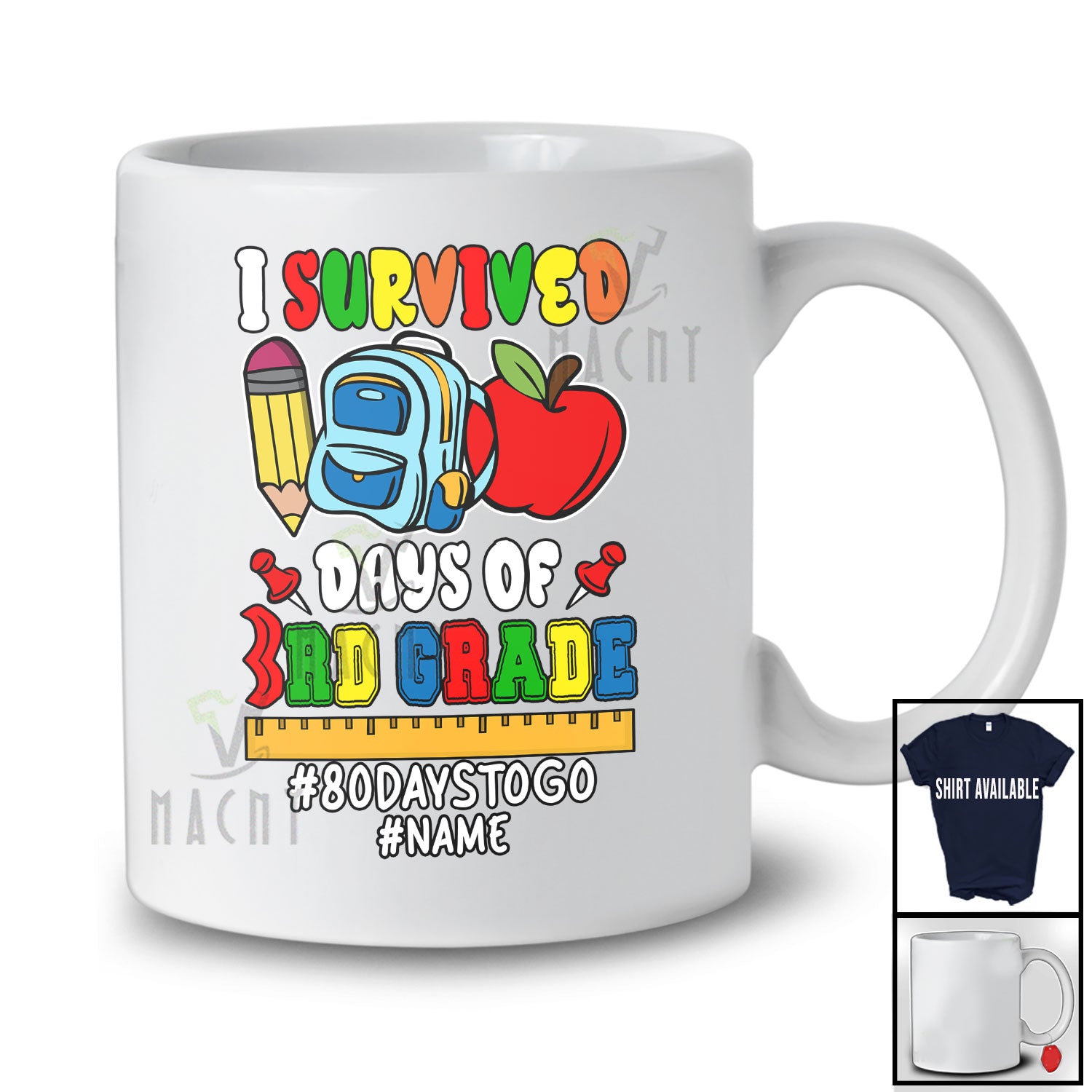 new MacnyStore - Personalized Custom Name I Survived 100 Days of 3rd Grade; Joyful Count Down 100 Days Students T-Shirt – Macnystore