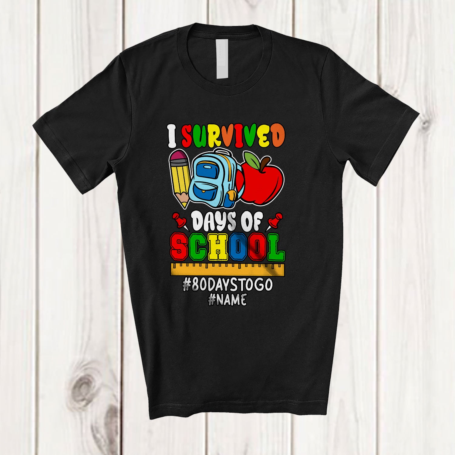 Personalized Custom Name I Survived 100 Days of School; Joyful Count Down 100 Days Students T-Shirt