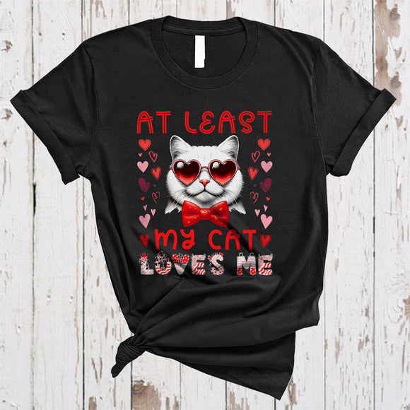 At Least My Cat Loves Me, Humorous Valentine Cat Wearing Heart Glasses, Animal Lover T-Shirt