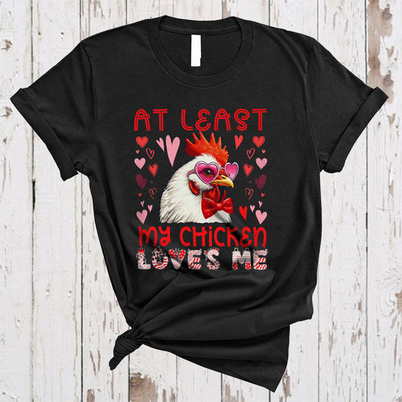 At Least My Chicken Loves Me, Humorous Valentine Chicken Wearing Heart Glasses, Animal Farmer T-Shirt