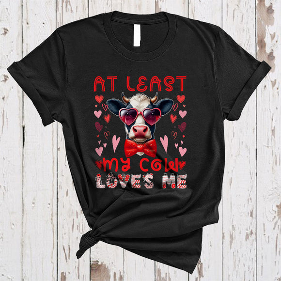 At Least My Cow Loves Me, Humorous Valentine Cow Wearing Heart Glasses, Animal Farmer Lover T-Shirt