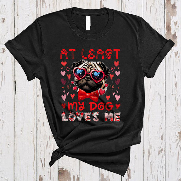 At Least My Dog Loves Me, Humorous Valentine Dog Wearing Heart Glasses, Animal Farmer Lover T-Shirt