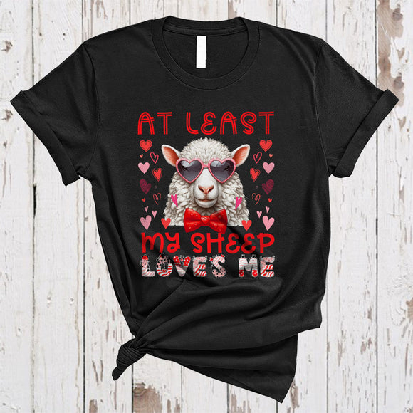 At Least My Sheep Loves Me, Humorous Valentine Sheep Wearing Heart Glasses, Animal Farmer Lover T-Shirt