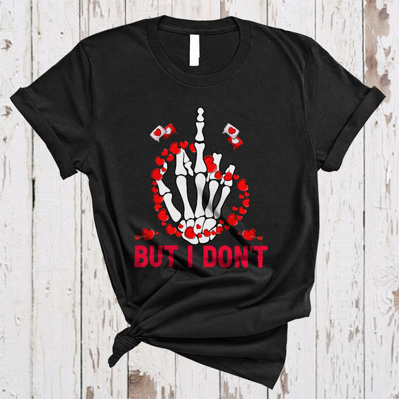 But I Don't, Wonderful Valentine Middle Finger Skeleton Hand Hearts, Matching Couple T-Shirt