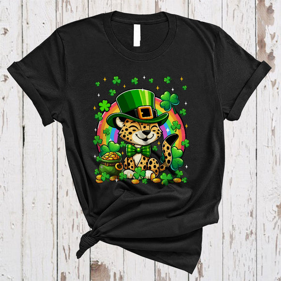 Cheetah Leprechaun With Shamrocks, Lovely St. Patrick's Day Rainbow, Wild Animal Lover T-Shirt