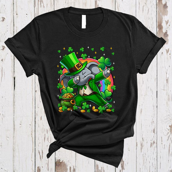 Dabbing Elephant Leprechaun With Shamrocks, Lovely St. Patrick's Day Rainbow, Wild Animal Lover T-Shirt