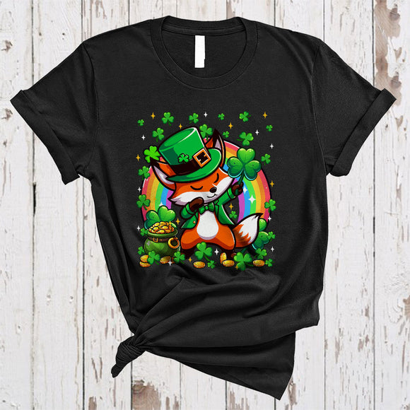 Dabbing Fox Leprechaun With Shamrocks, Lovely St. Patrick's Day Rainbow, Wild Animal Lover T-Shirt