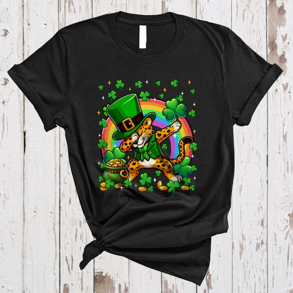 Dabbing Leopard Leprechaun With Shamrocks, Lovely St. Patrick's Day Rainbow, Wild Animal Lover T-Shirt