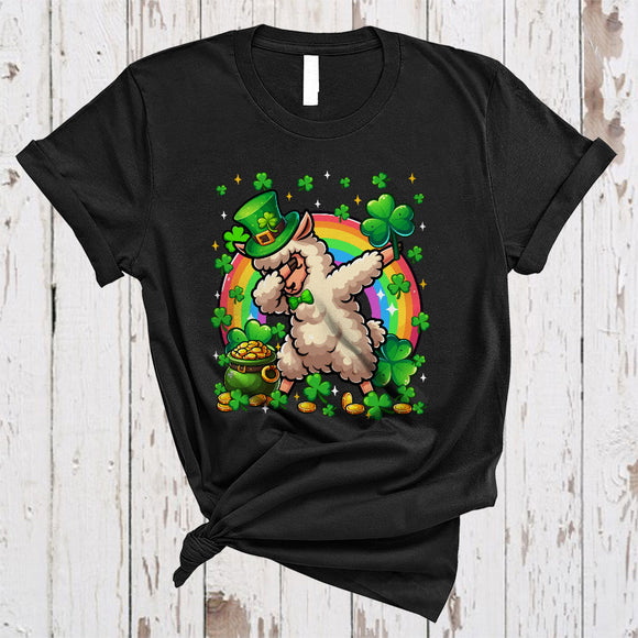 Dabbing Llama Leprechaun With Shamrocks, Lovely St. Patrick's Day Rainbow, Wild Animal Lover T-Shirt
