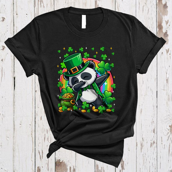 Dabbing Panda Leprechaun With Shamrocks, Lovely St. Patrick's Day Rainbow, Wild Animal Lover T-Shirt