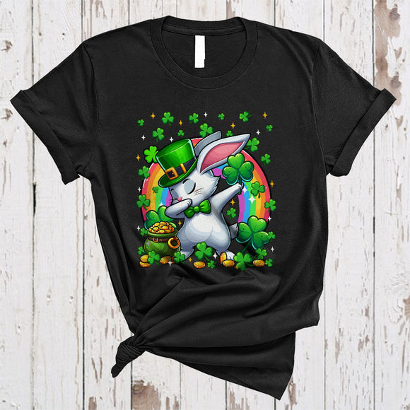 Dabbing Rabbit Leprechaun With Shamrocks, Lovely St. Patrick's Day Rainbow, Wild Animal Lover T-Shirt