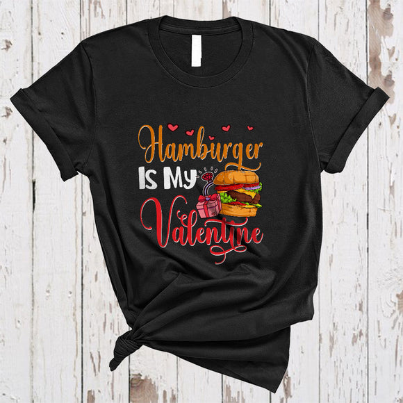 Hamburger Is My Valentine, Awesome Valentine's Day Hamburger Lover, Hearts Food Lover Matching Single T-Shirt