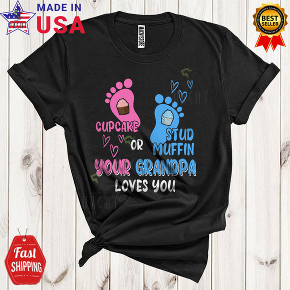 Cupcake Or Stud Muffin Your Grandpa Loves You Happy Father's Day Gender Reveal Pregnancy Footprint T-Shirt