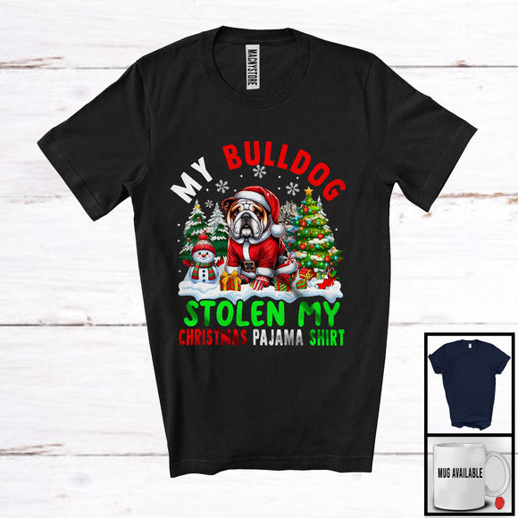My Bulldog Stolen My Christmas Sweater; Lovely Santa Animal With X-mas Tree Snowing T-Shirt