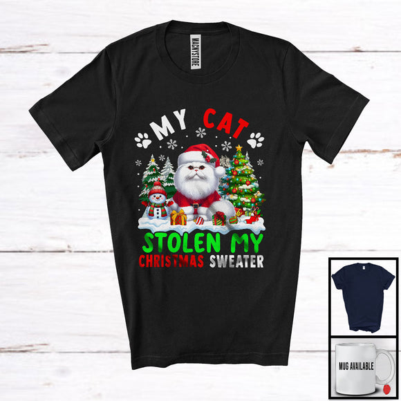 My Cat Stolen My Christmas Sweater; Lovely Santa Animal With X-mas Tree Snowing T-Shirt