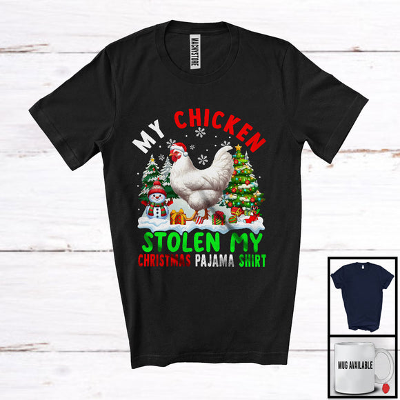 My Chicken Stolen My Christmas Pajama Shirt; Amazing X-mas Tree Snowing; Family Group T-Shirt
