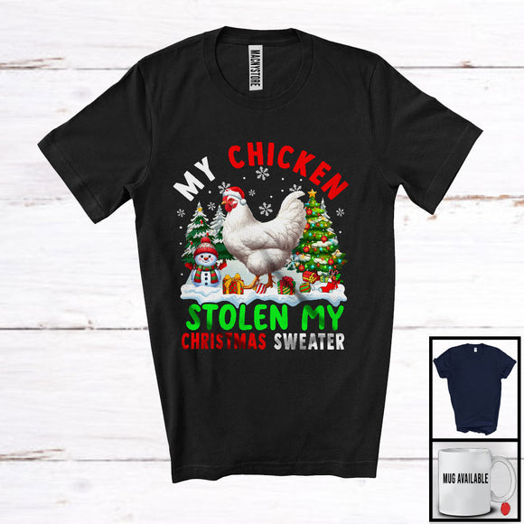 My Chicken Stolen My Christmas Sweater; Lovely Santa Animal With X-mas Tree Snowing T-Shirt