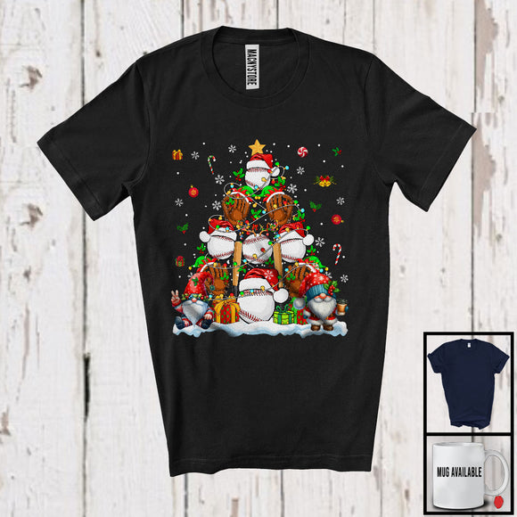 Baseball Squad; Lovely Baseball Equipment Christmas Tree Lights; Sport Player Playing Gnomes T-Shirt
