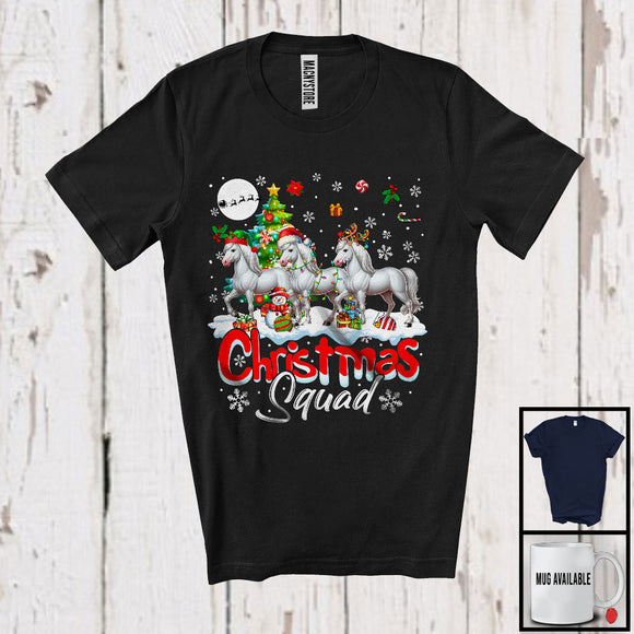 Christmas Squad; Adorable Horse X-mas Tree Snowing; Horse Lover Farm Farmer Family Group T-Shirt