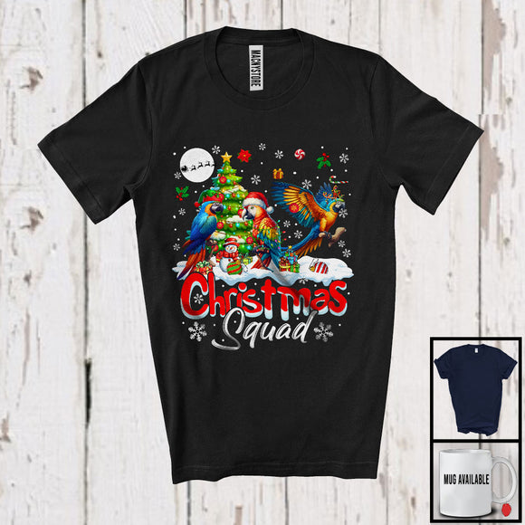 Christmas Squad; Adorable Macaw X-mas Tree Snowing; Macaw Bird Matching Family Group T-Shirt
