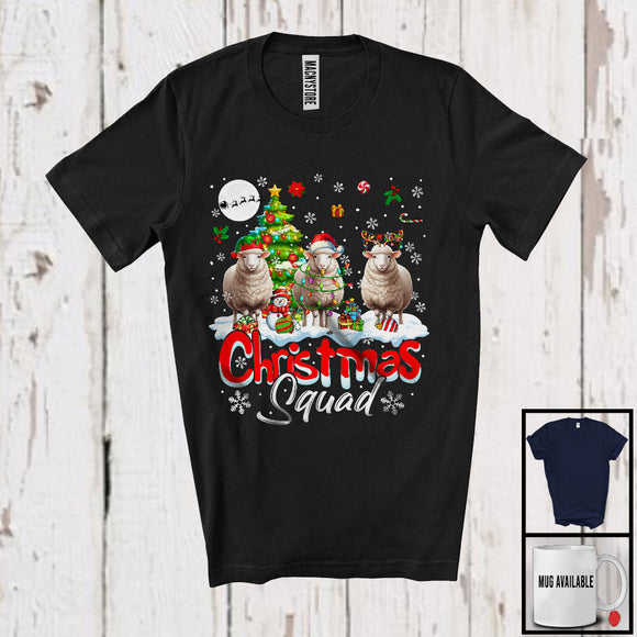 Christmas Squad; Adorable Sheep X-mas Tree Snowing; Sheep Lover Farm Farmer Family Group T-Shirt