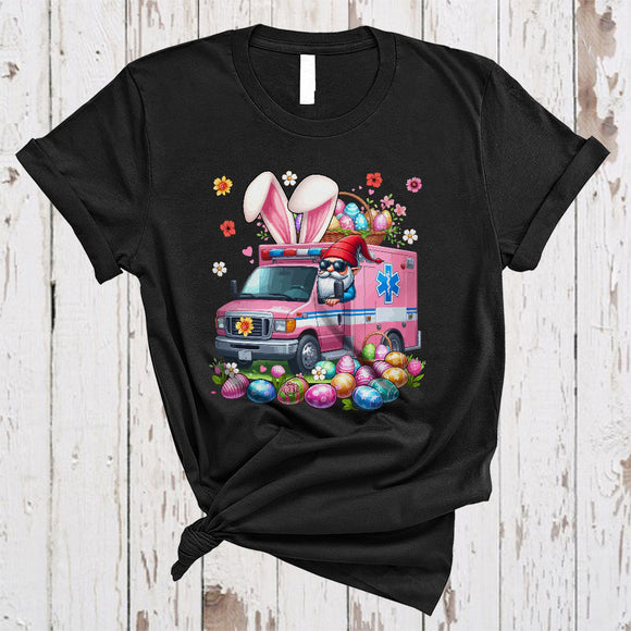 Bunny Gnome Driving Ambulance, Wonderful Easter Flowers Gnomes Gnomies, Egg Hunting Group T-Shirt