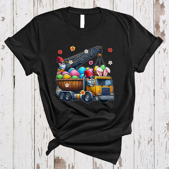 Bunny Gnome Driving Crane Truck, Wonderful Easter Flowers Gnomes Gnomies, Egg Hunting Group T-Shirt