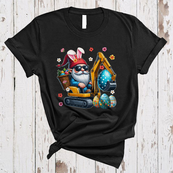 Bunny Gnome Driving Excavator, Wonderful Easter Flowers Gnomes Gnomies, Egg Hunting Group T-Shirt