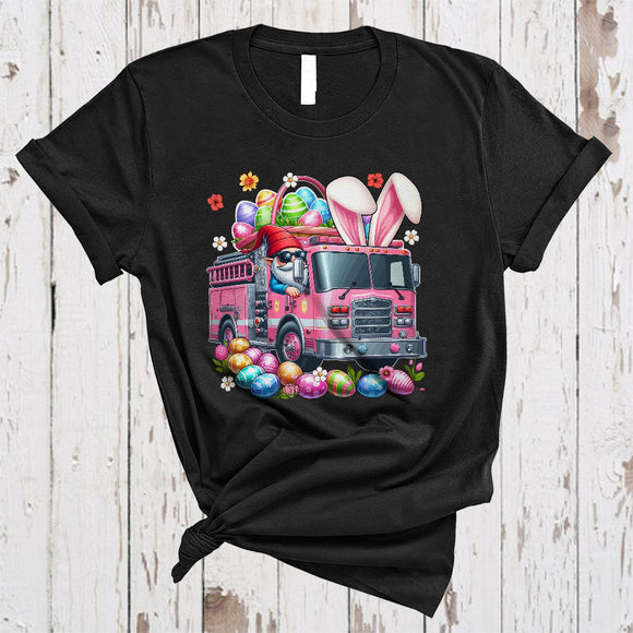 Bunny Gnome Driving Fire Truck, Wonderful Easter Flowers Gnomes Gnomies, Egg Hunting Group T-Shirt