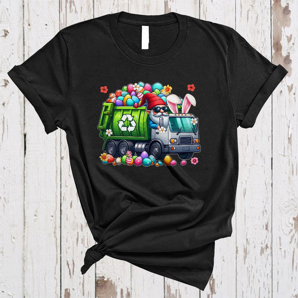 Bunny Gnome Driving Garbage Truck, Wonderful Easter Flowers Gnomes Gnomies, Egg Hunting Group T-Shirt