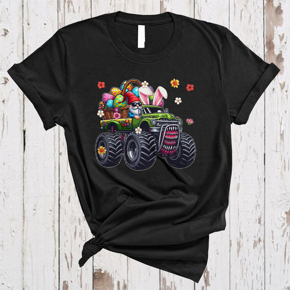 Bunny Gnome Driving Monster Truck, Wonderful Easter Flowers Gnomes Gnomies, Egg Hunting Group T-Shirt
