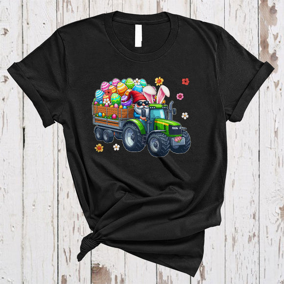 Bunny Gnome Driving Tractor, Wonderful Easter Flowers Gnomes Gnomies, Egg Hunting Group T-Shirt
