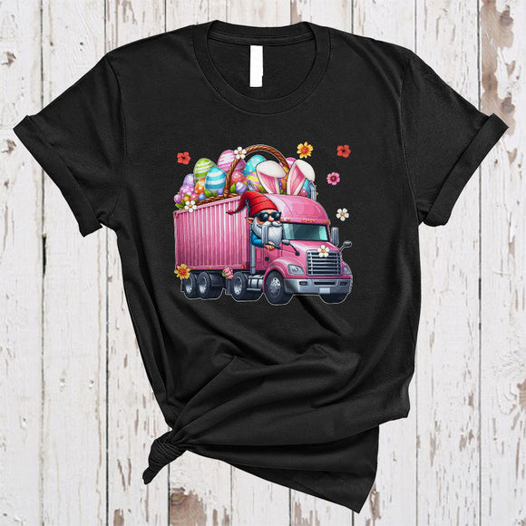 Bunny Gnome Driving Pickup Truck, Wonderful Easter Flowers Gnomes Gnomies, Egg Hunting Group T-Shirt
