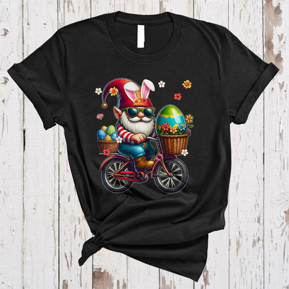 Bunny Gnome Riding Bicycle, Wonderful Easter Flowers Gnomes Gnomies, Egg Hunting Group T-Shirt