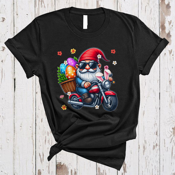 Bunny Gnome Riding Motorcycle, Wonderful Easter Flowers Gnomes Gnomies, Egg Hunting Group T-Shirt