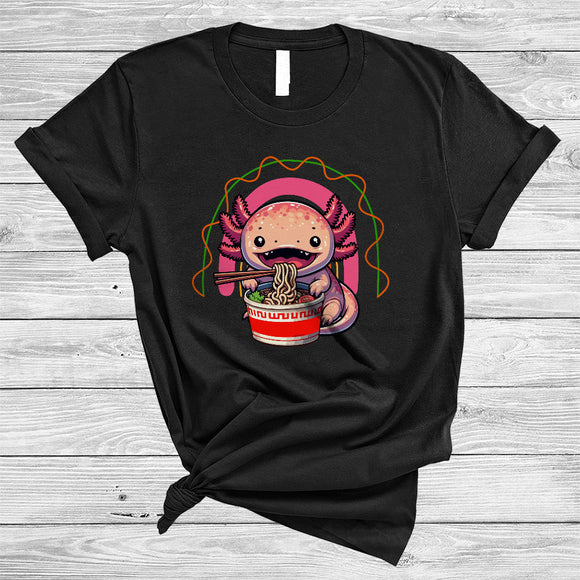 Anime Axolotl Eating Ramen Noodles, Lovely Japanese Food Anime Rainbow, Girls Women Family T-Shirt