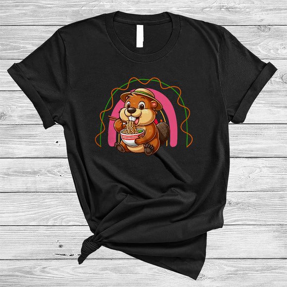 Anime Beaver Eating Ramen Noodles, Lovely Japanese Food Anime Rainbow, Girls Women Family T-Shirt