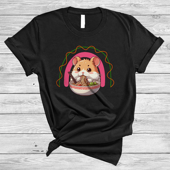 Anime Hamster Eating Ramen Noodles, Lovely Japanese Food Rainbow, Girls Women Family T-Shirt