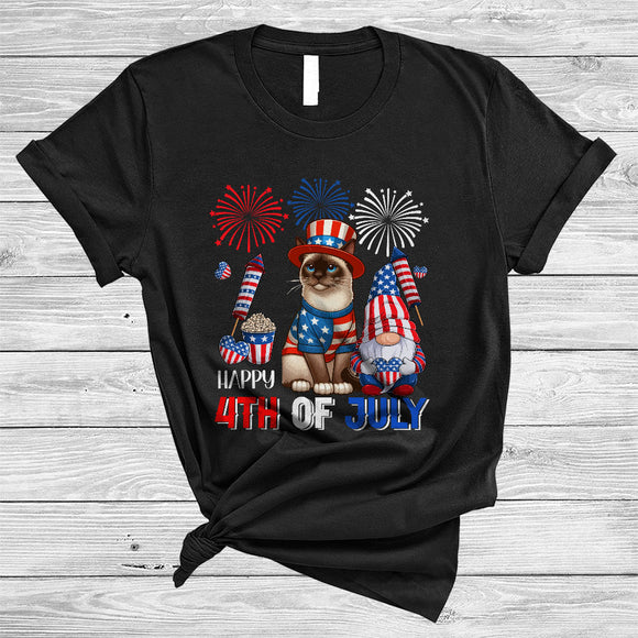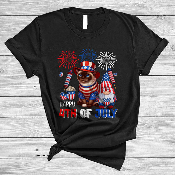 Happy 4th Of July, Lovely Independence Day US Flag Siamese Cat, Firework Gnomes Patriotic T-Shirt