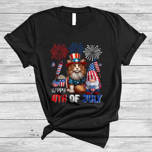 Happy 4th Of July, Lovely Independence Day US Flag Maine Coon Cat, Firework Gnomes Patriotic T-Shirt