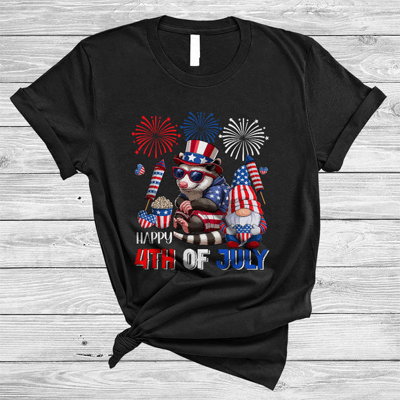 Happy 4th Of July, Lovely Independence Day US Flag Opossum, Firework Gnomes Patriotic T-Shirt