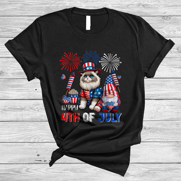Happy 4th Of July, Lovely Independence Day US Flag Ragdoll Cat, Firework Gnomes Patriotic T-Shirt