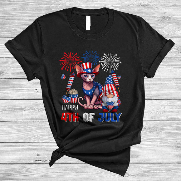 Happy 4th Of July, Lovely Independence Day US Flag Sphynx Cat, Firework Gnomes Patriotic T-Shirt