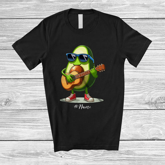 Personalized Avocado Playing Guitar; Lovely Custom Name Guitar Player; Vegan Musical Instruments T-Shirt