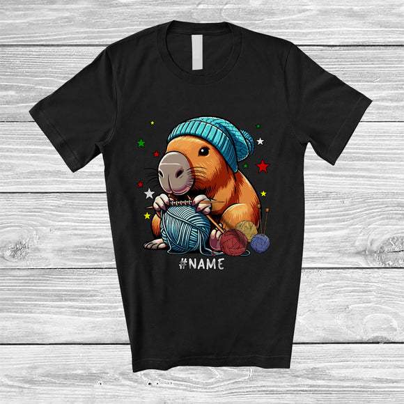 Personalized Capybara Knitting; Awesome Birthday Knitting Animal; Custom Name Boys Girls Family T-Shirt