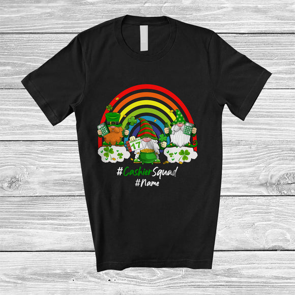 Personalized Custom Name Cashier Squad; Joyful St. Patrick's Day Three Gnomes; Rainbow T-Shirt