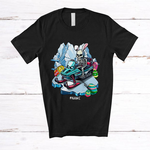 Personalized Bunny Skeleton Driver Snowmobile; Awesome Easter Eggs Hunting; Custom Name Family T-Shirt