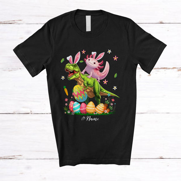 Personalized Custom Name Axolotl Ridding T-Rex; Amazing Easter Eggs Hunting; Family T-Shirt
